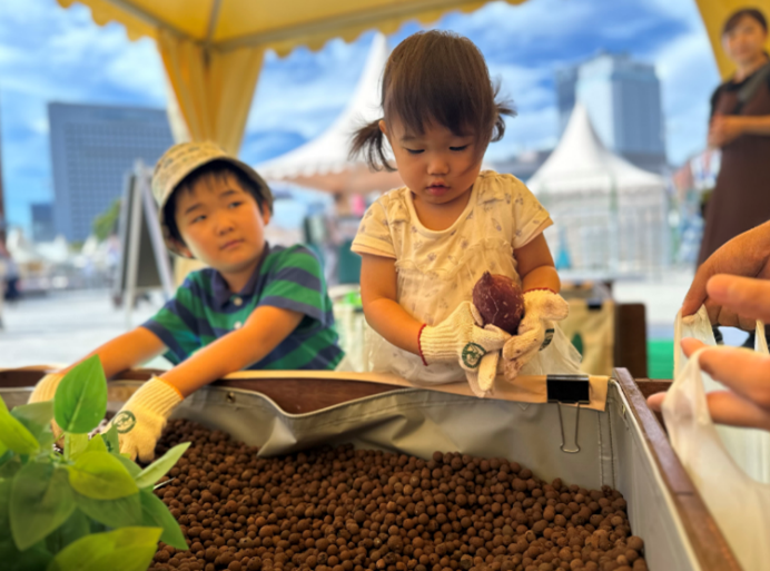 横浜市内産のサツマイモを使った、汚れずに楽しめるイモ掘り体験!